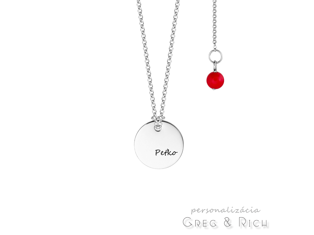 Zlatá retiazka s príveskom - medailónikom s gravírovaním podľa Vášho želania. Vhodný ako dar ku krstu alebo narodeniu bábätka. Dizajnovou "čerešničkou" je náš signifikantný červený koral, ktorý zdobí koniec zlatej retiazky. Je nielen krásnou ozdôbkou ale podľa starej tradície chráni pred "urieknutím", jeden nikdy nevie.