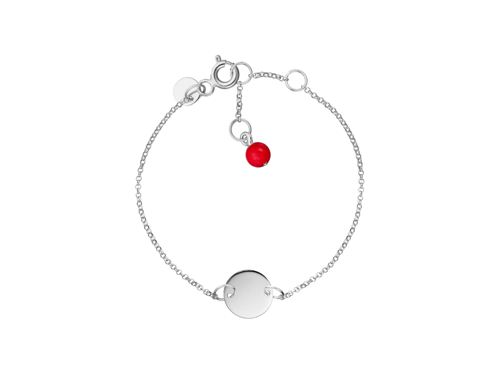Tento zlatý detský náramok má platničku, na ktorú možno vygravírovať meno, iniciálku alebo dátum a miesto narodenia, prezývku či GPS súradnice miesta narodenia. Dieťa ho môže nosiť na troch dĺžkach, takže bude rásť spolu s ním. Koral ktorý zdobí zapínanie náramku je prezývaný aj ako “morský les” - je to dar mora ktorý je považovaný, podľa starého zvyku, za ochranný a liečivý. Práve červené koraly sa považujú za najmocnejšie. Gravírovanie radi s Vami odkonzultujeme text i umiestnenie, a dobrá správa - je v cene.