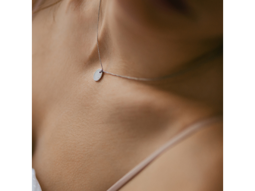Krásny minimalistický medailón z bieleho zlata s certifikovaným diamantom. Tento nadčasový šperk môžete nosiť čistý alebo Vám naň vygravírujeme meno, dátum či iniciálky podľa Vášho želania. Medailónik je na jemnej, no kvalitnej a pevnej retiazke z bieleho zlata. Zlatú retiazku sme zakončili červeným koralom, ktorý podľa starej tradície nositeľa ochraňuje. Šperk ako stvorený na to, aby bol darom pre milovanú osobu.