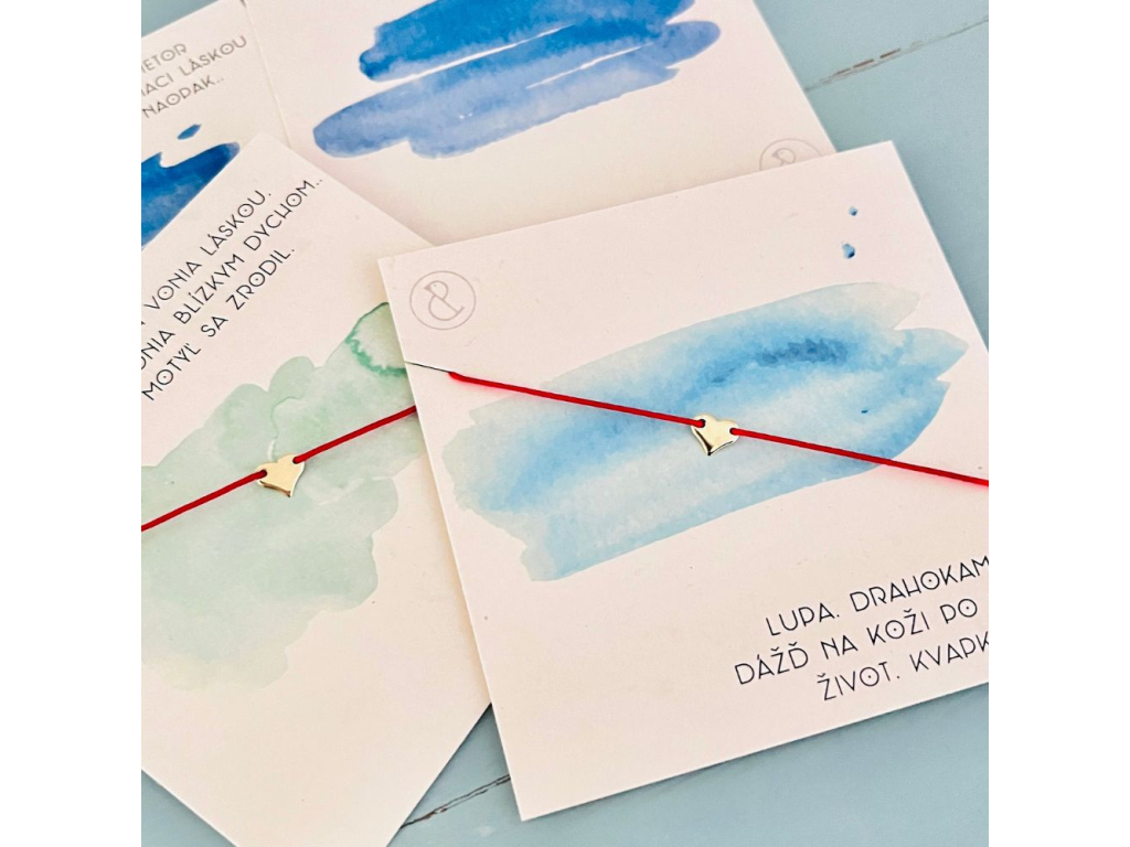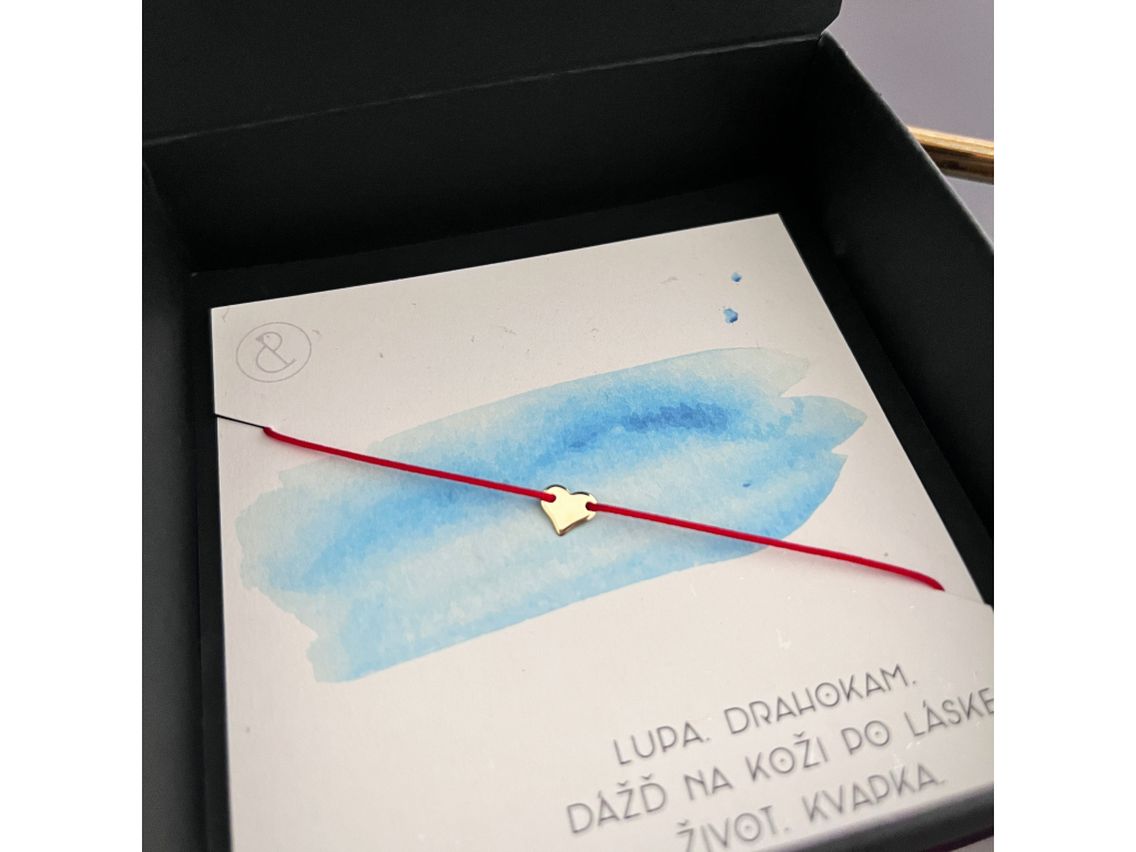 Červená šnúrka ti pripomenie silu, ktorú nosíš v sebe. Zlaté srdiečko hovorí, že na lásku má právo každá z nás. Daruj ho sebe alebo niekomu, na kom ti záleží. Podľa starej tradície sa náramok viaže na tri uzly. Tieto uzly vám môže uviazať osoba ktorú máte radi, viažu sa s konkrétnymi želaniami, myšlienkami alebo modlitbami. Každý uzol je symbolickým spečatením vašej vôle a nádeje.