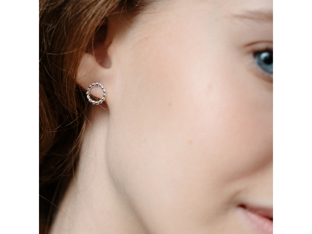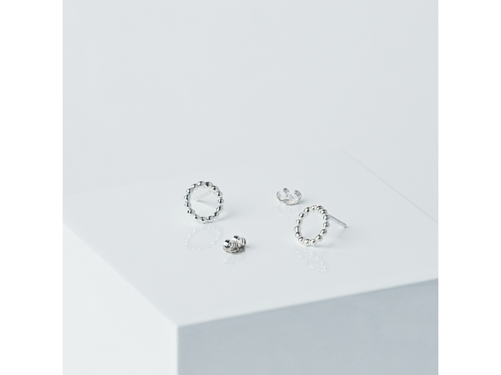 Malé krúžky, ktoré sa napichujú spredu. Krúžok z guľôčok pôsobí veľmi nežne, krásne odráža svetlo. Krásny šperk, ktorý Vás nesklame a siahnete po ňom vždy keď budete chcieť mať dobrý deň. Matchy-matchy s väčšou verziou strieborných kruhov a samozrejme s retiazkou JOLIE, na ktorej je presne taký istý krúžok.