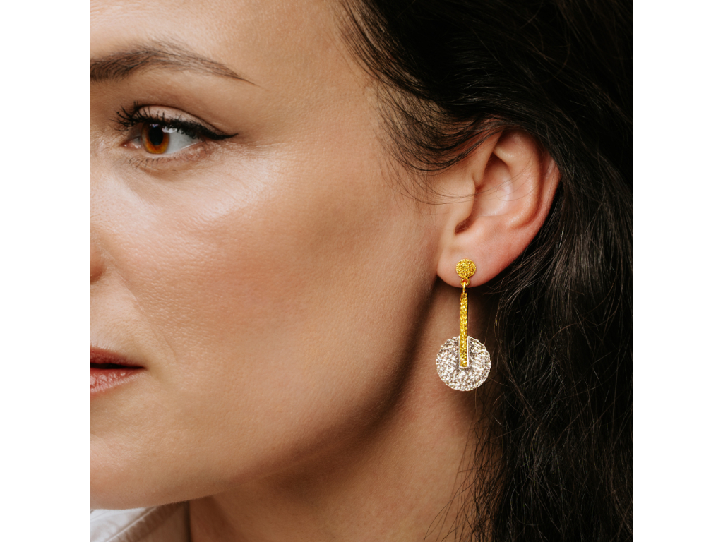 Šperk, strieborné náušnice z kolekcie MUSAI sú naše prvé visiace strieborné náušnice. Pôsobia žensky a dodajú jej nositeľke noblesu. Nádherné ju rozžiaria. Dizajn naušníc je namiešaný z ingrediencií ako - nadčasová krása - štipka gréckej histórie - umelecké ručné spracovanie striebra. Postupne si náušnice môžete doplniť napríklad aj o náramok alebo náhrdelník z tejto krásu ženy oslavujúcej kolekcie. Strieborné náušnice ako aj celá kolekcia MUSAI bola inšpirovaná deviatimi múzami - dcérami Dia. Strieborné náušnice vynosíte vo všetkých ročných obdobiach. Štruktúra materiálu náušníc hádže zaujímavé odlesky, pozlátený detail dodáva rozmer luxusu. Naživo sú náušnice ešte krajšie! Nádherné vás rozžiaria. Materiál a jeho spracovanie pôsobí nadčasovo a trošku nadpozemsky. Strieborný náramok MUSAI noste do práce, na večierky, rodinné oslavy, v bežný deň. Darujte ho vašim kamarátkam, mame, dcére. Bude aj skvelým darom pre družičky. Doplniť ho môžete luxusným náhrdelníkom i náušnicami v rovnakom dizajne.