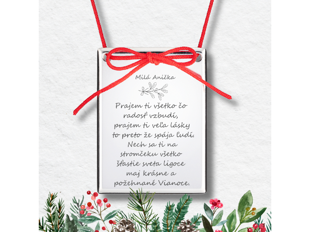 Vianočné ozdoby majú krásnu moc - uchovávať spomienky. A preto sme sa rozhodli vyrobiť takú, ktorá vo Vašej rodine zostane aj pre ďalšie generácie - zo striebra. Strieborné prianie, ktoré každý rok slávnostne vytiahnete zo škatuľky a zavesíte na vetvičku. Na striebornú ozdobu Vám vygravírujeme váš text alebo Vám môžeme ponúknuť text v podobe vinšu z našej ponuky.