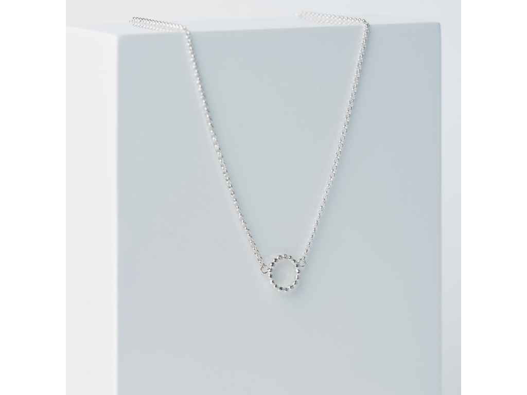 Malý krúžok z guľôčok je uchytený priamo na retiazke. Strieborný náhrdelník JOLIE pôsobí veľmi nežne a žensky. Guľôčky z ktorých je kruh vyskladaný znázorňujú množstvo drobných nepatrných zázrakov ktoré nám život prichystal. Krásny šperk, môžete nosiť v sete s náušnicami Angelina. Vždy keď po ňom siahnete budete mať dobrý deň.