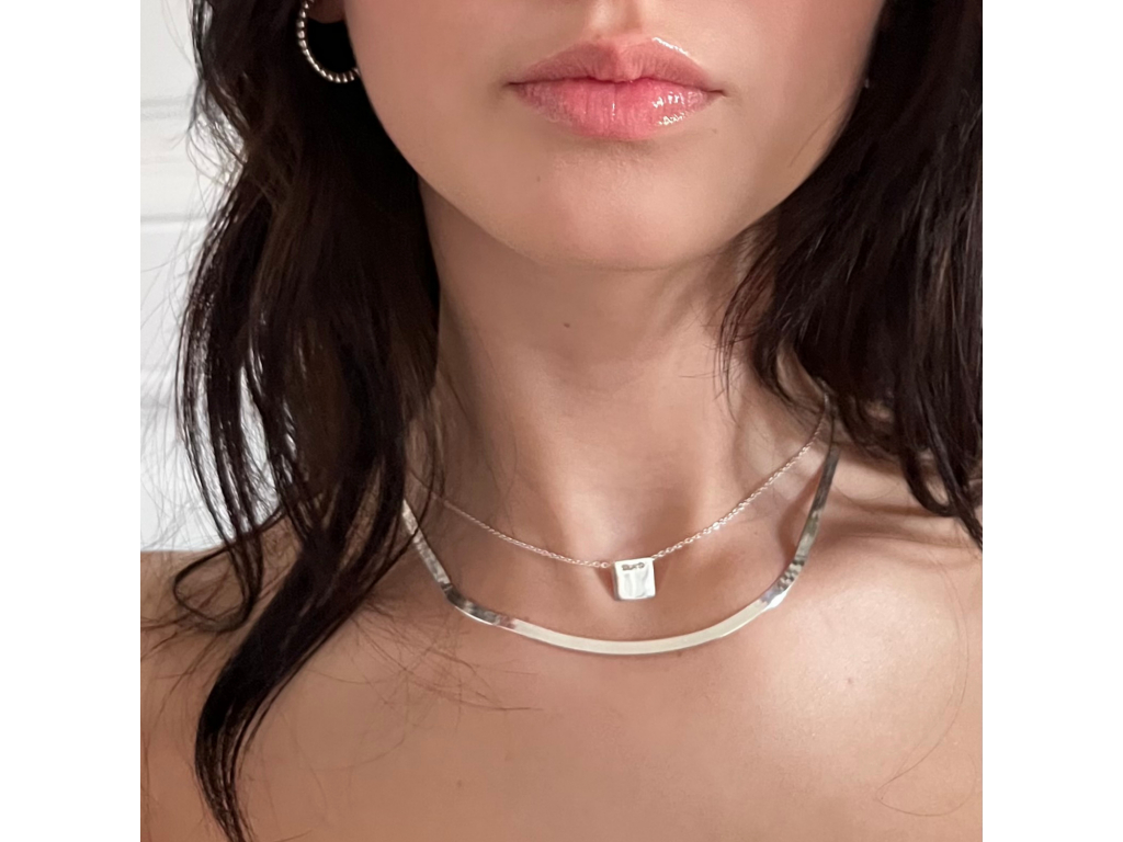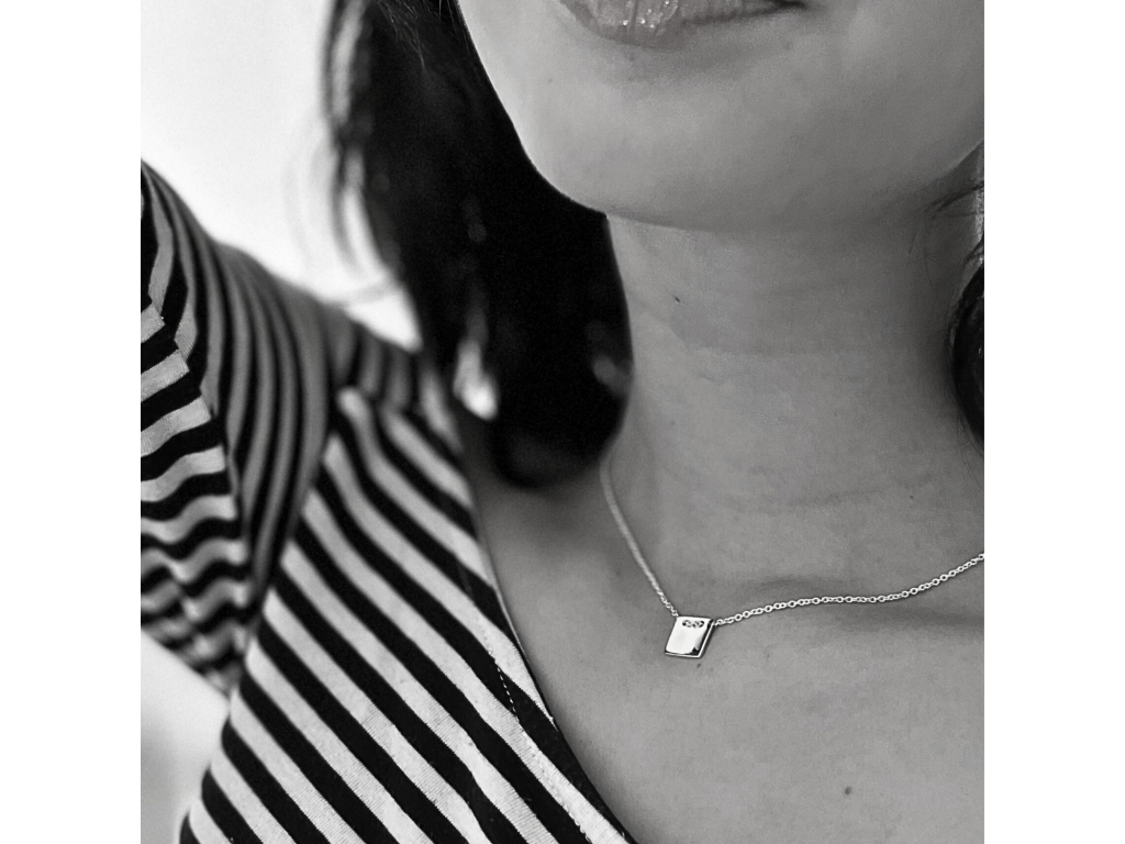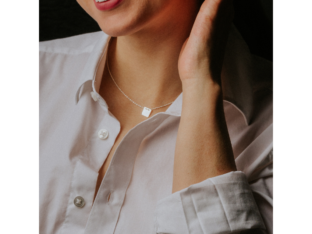 MIROIR - strieborný náhrdelník s hranatou platničkou ohúri svojim jednoduchým dizajnom. Platnička vo vysokom lesku, hádže na okolitý svet svoje blýskavé lúče. Pripomína hru so slnkom a malým zrkadielkom. Názov náhrdelníku je presný - inšpirovaný francúzskym slovom miroir = zrkadlo, vodná hladina alebo odraz. Na medailónik Vám vygravírujeme meno alebo iniciálky niekoho na kom vám záleží.