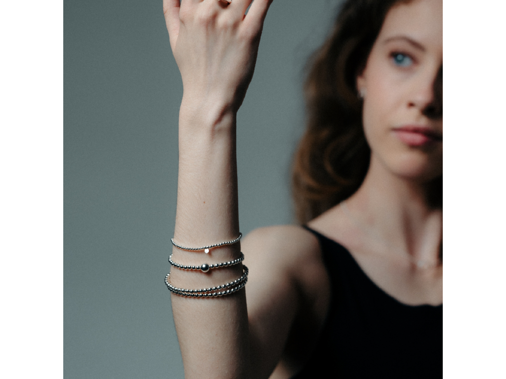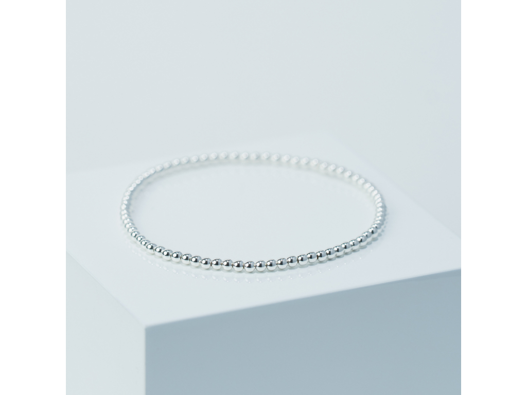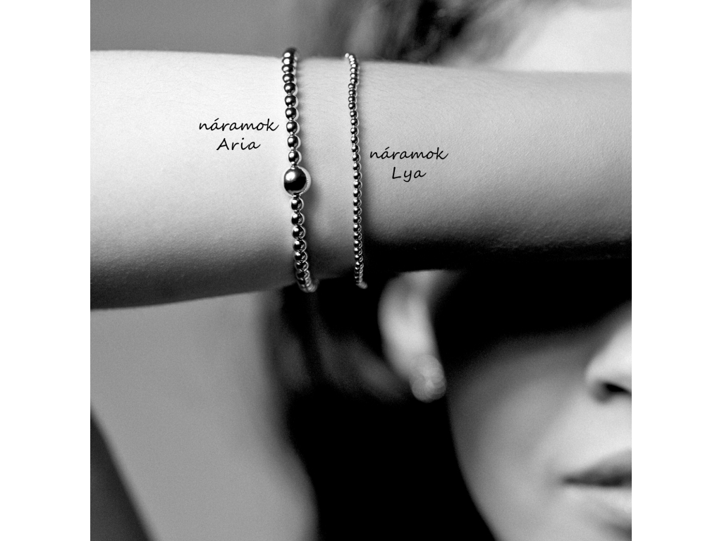 Pohodlný, univerzálny a veľmi "cute" náramok. Náramok z drobných korálok z pravého striebra na gumičke zo špeciálneho silikónu si ľahko navlečiete na ruku. A hneď aj zabudnete, že Vás zdobí, teda pokiaľ Vám ho niekto opäť nepochváli. Tento náramok je skvelý na teaming s inými náramkami. Rozumie si so šnúrkami, náramkami z liečivých kameňov my ho však samozrejme odporúčame kombinovať so striebornými náramkami z kolekcie VIVRE - s elastickým náramkom ARIA či pevným guľôčkovým GALLA.