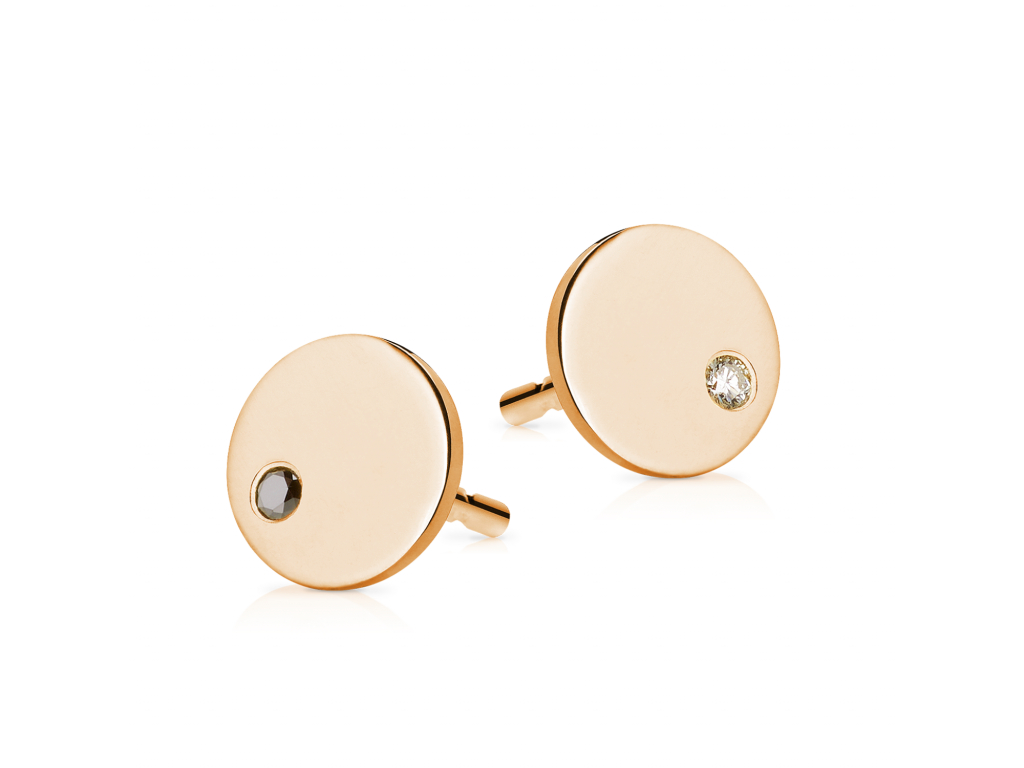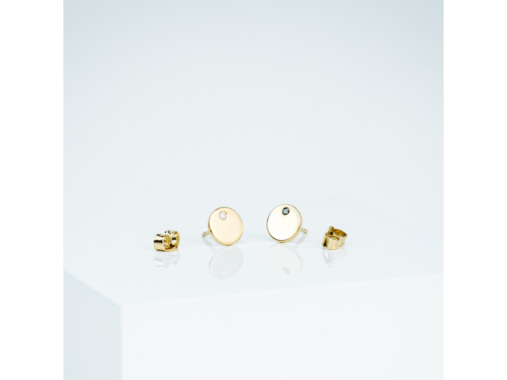 Náušnice zo žltého zlata osadené jedna bielym a jedna čiernym diamantom. Veď bez noci nie je deň...:)