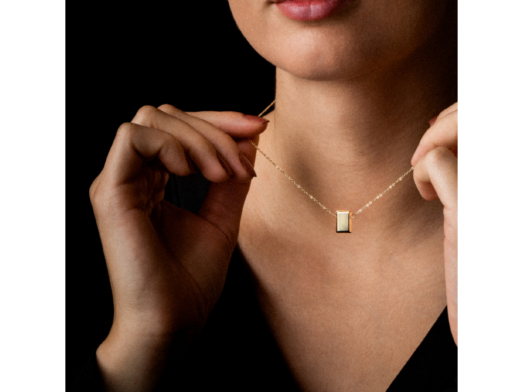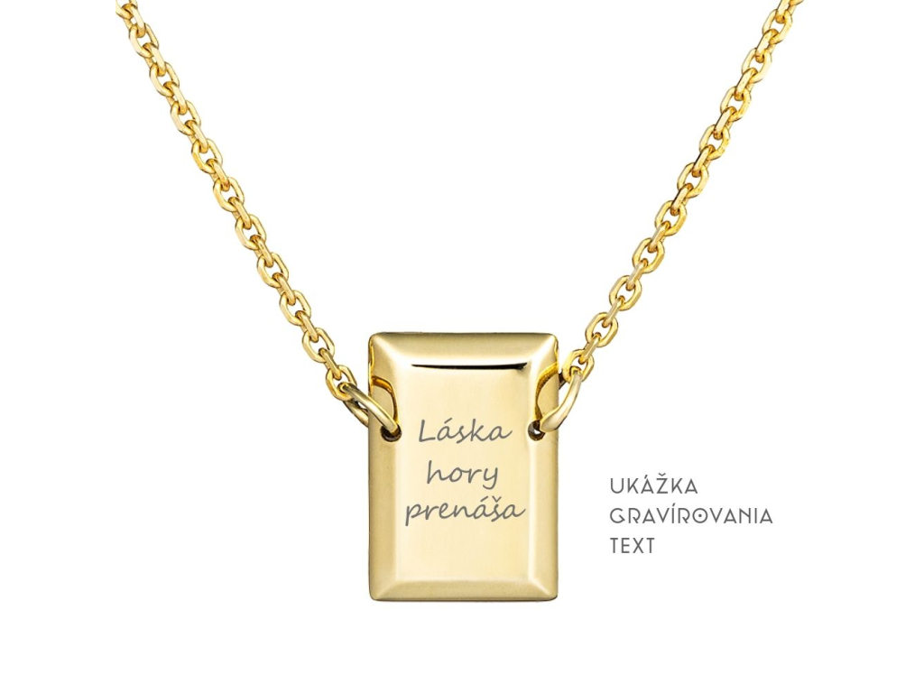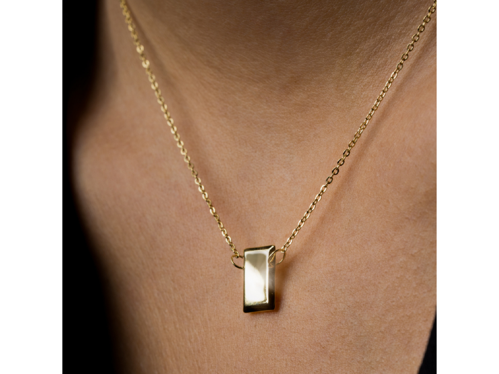 Náhrdelník zo zlata sme pomenovali - Tresora - čo je hrou s výrazom poklad. Zlatá tehlička sama o sebe, no s gravírovaním na zadnej strane - tak budú i symbolicky Vaše poklady stále pri Vás. Ak tento náhrdelník darujete, neodovzdávate iba šperk ale i posolstvo: "Ty si ten najväčší poklad v TRESORe môjho srdca".